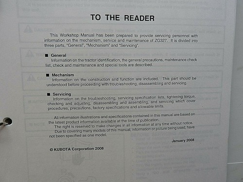 Kubota Zg327 327 Zero Turn Mower Service Repair Manual Binder Very Good Shape Ebay
